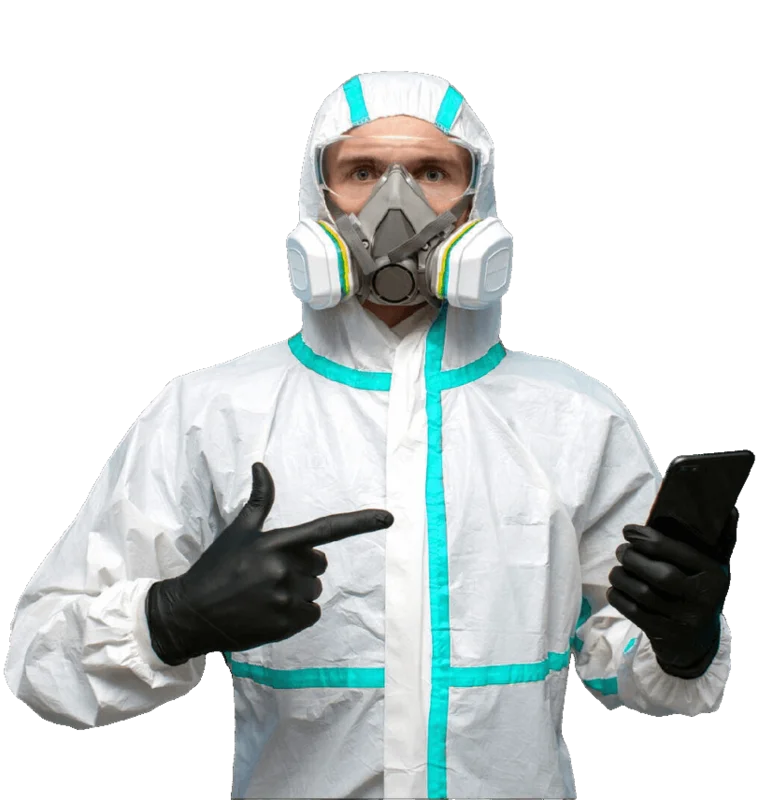 2. средства защиты включают хлопчатобумажный комбинезон с капюшоном, перчатки, калоши и противогаз или респиратор. Это предотвращает контакт дезинфицирующих средств с кожей, глазами и внутренними органами.